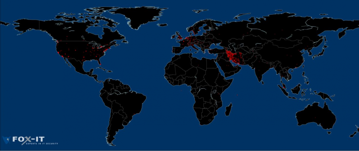 Existing web browsers, email clients and operating systems depend on Certificate Authorities (CAs), and the SSL certificates they produce, in order to know that you are really visiting the domain that you intended to visit. If these certificates are false, someone in control of a network can tamper with and spy on connections. A hacker who gets a certificate for mail.google.com, for instance, will be able to steal people's Gmail passwords and hijack their accounts. A hacker who gets a certificate for addons.mozilla.org or *.microsoft.com might be able to install malicious software on victims' computers. In fact, these kinds of attacks against Gmail happened on a massive scale during July and August of this year. DigiNotar's post-mortem by the Fox-IT firm produced the following map of the attack's 300,000+ victims: