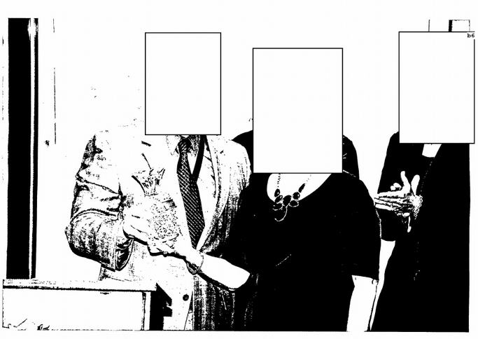 USA Today reporter Brad Heath submitted a FOIA request to the FBI for documents related to a retirement party, to which he believed a certain controversial figure had been invited. Rather than just rejecting the record request altogether, to the agency's credit, the FBI's FOIA team went through the photos one by one, adding white squares to mask the faces of all the attendees in an admirable attempt to balance transparency and confidentiality.