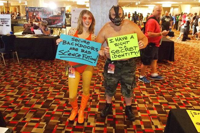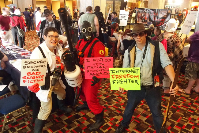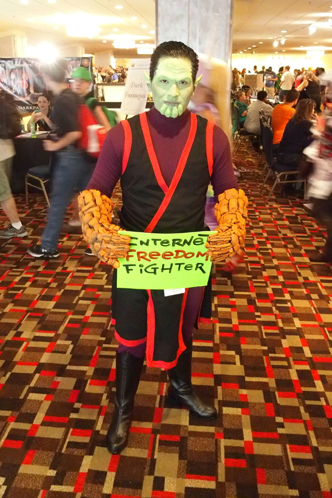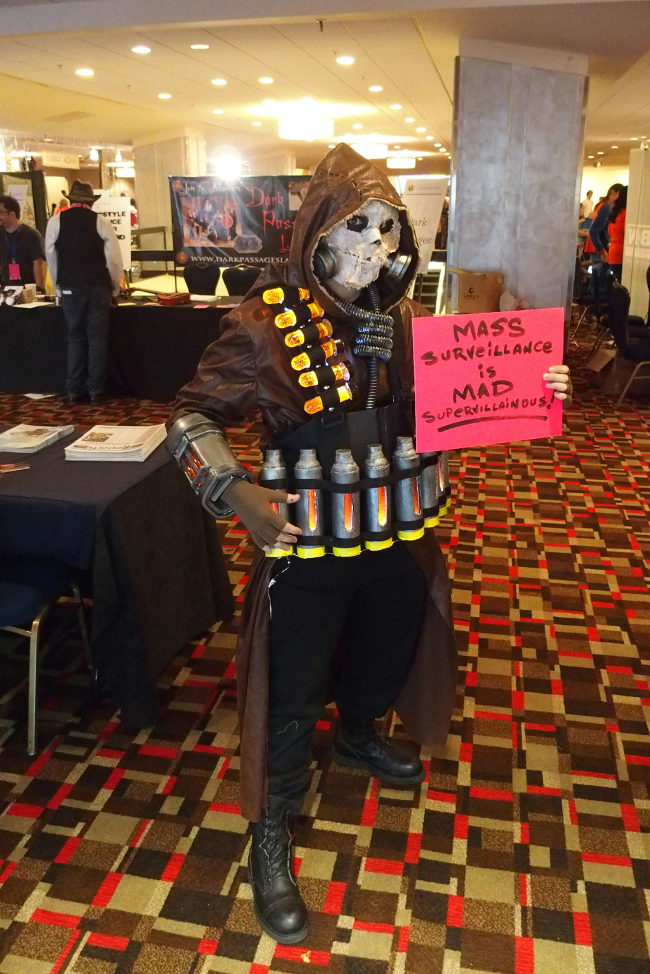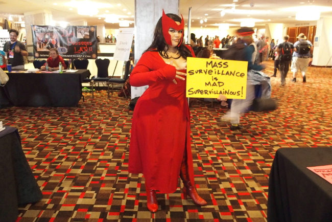 More than 120 cosplayers posed for privacy and free speech at EFF and Access Now's Project Secret Identity station at Dragon Con. Over the Labor Day weekend, we were visited by Scarecrow and "Weird Al," Marvel Zombies and self-designed Steampunk characters, and heroes and villains from anime and video games—all with a common interest in defending Internet freedom.