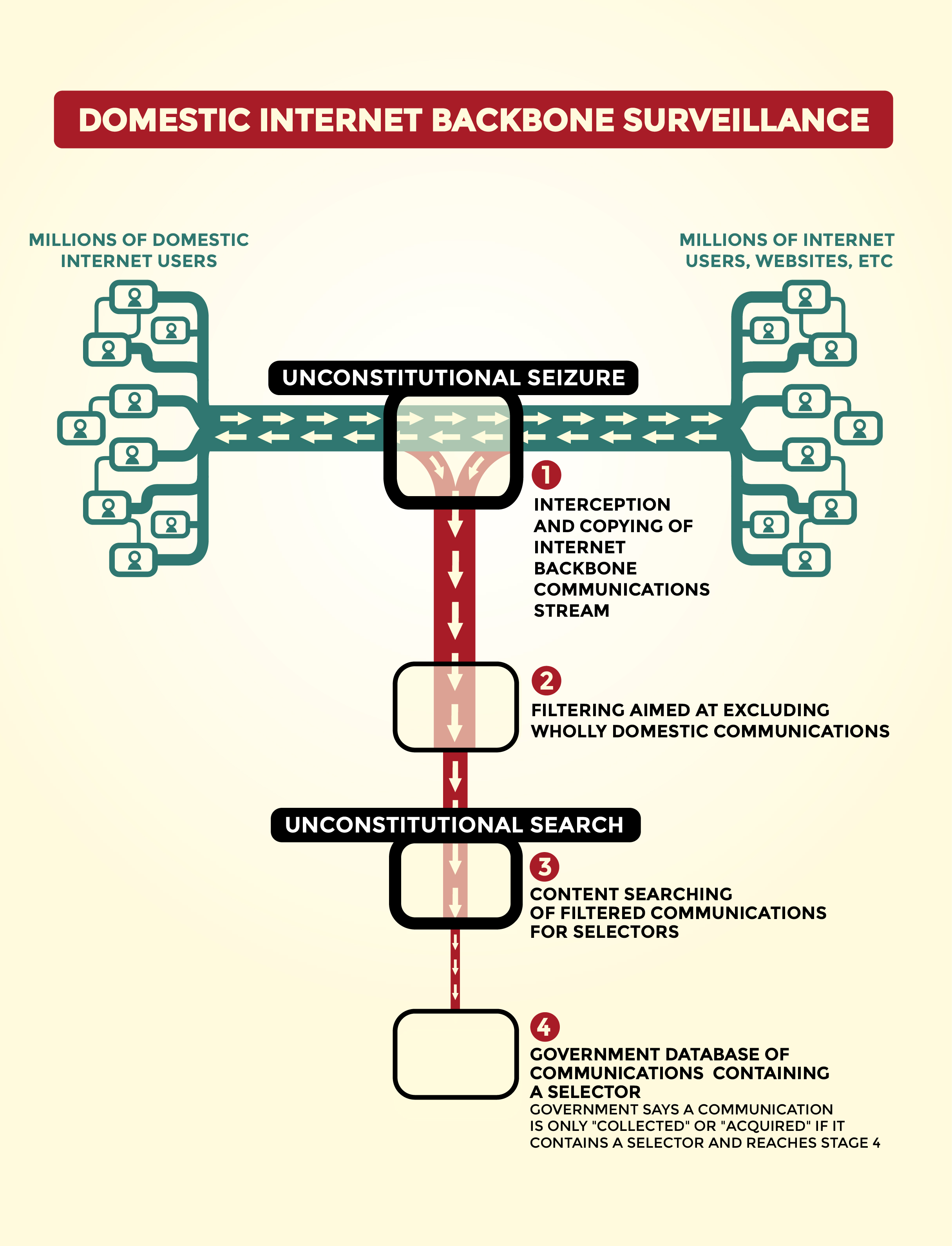 In the new year, we’ll launch campaigns to reform both Section 702 and E.O. 12333 to protect Fourth Amendment principles violated by mass surveillance. We’ll also continue our struggle in the courts, pursuing our flagship cases in Jewel and First Unitarian while supporting aligned litigation like Klayman, ACLU, and Wikimedia.