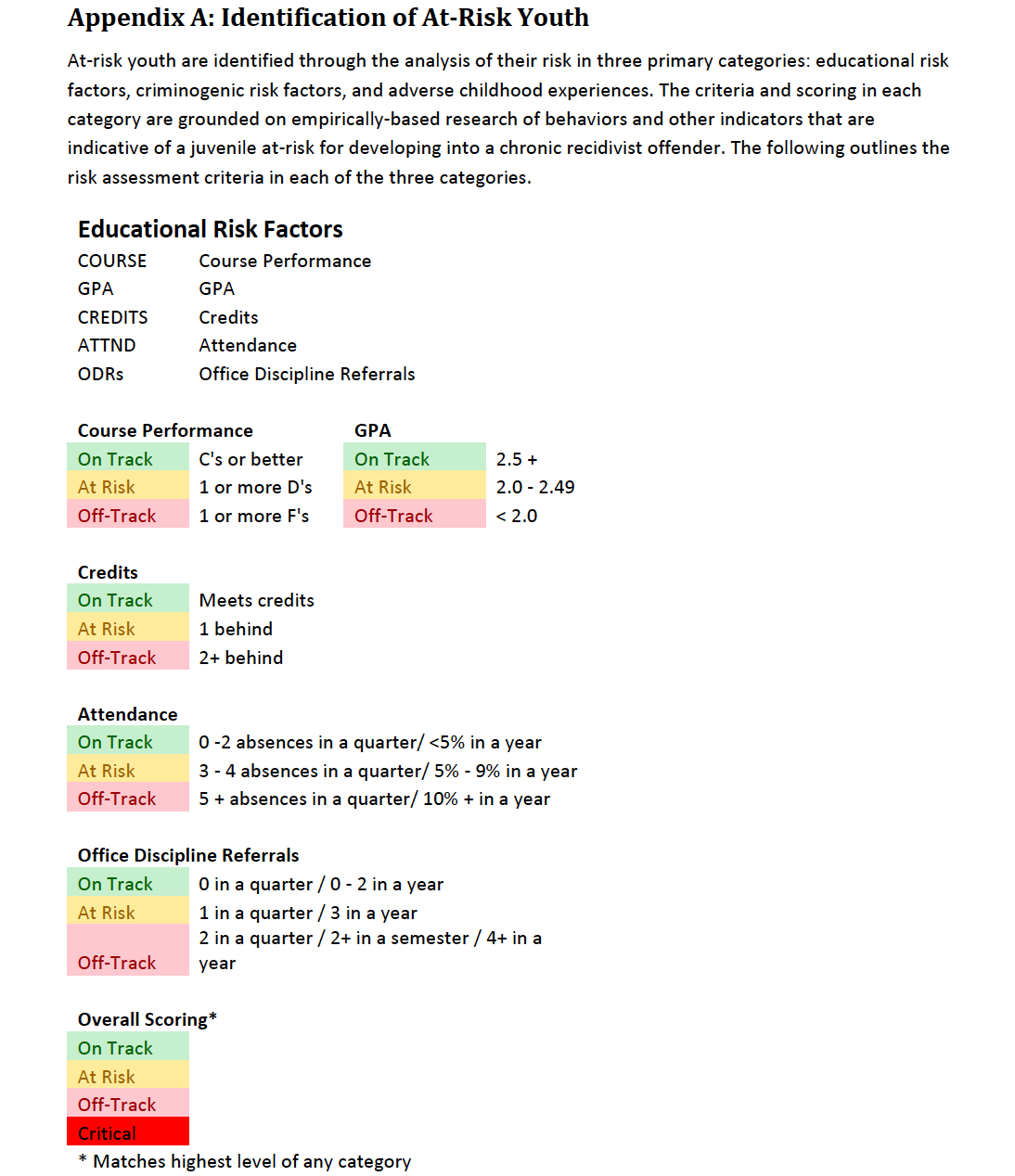 The ILP manual lists characteristics that the program considers as so-called “criminogenic risk factors”; these are the factors unscientifically believed to lead to future criminality. The characteristics include being a victim of a crime, unspecified “low intelligence,” “antisocial parents,” and being “socio-economically deprived.” The ILP manual explains the program’s purpose is to identify youth “destined to a life of crime.”