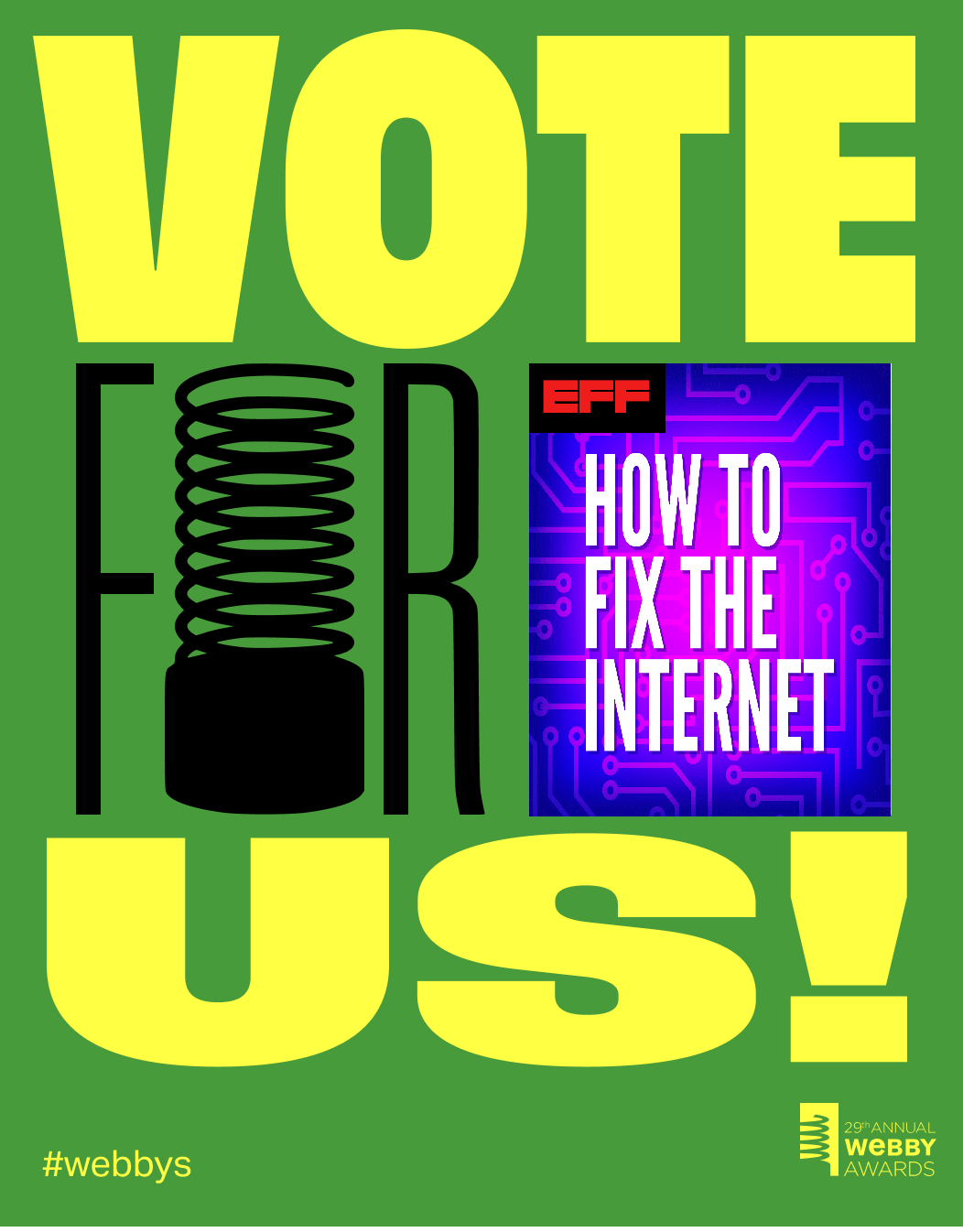 EFF’s “How to Fix the Internet” podcast is a nominee in the Webby Awards 29th Annual People's Voice competition – and we need your support to bring the trophy home!