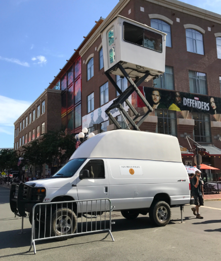In 2011, the San Diego Police Department acquired a TerraHawk Mobile Utility Surveillance Tower (MUST)—a van with an observation compartment on top that can be lifted 25-feet in the air—for $200,000. Two years later, the agency purchased three mobile surveillance trailers, which feature an extendable pole outfitted with dome cameras. These systems are deployed at public events such as San Diego Comic-Con.