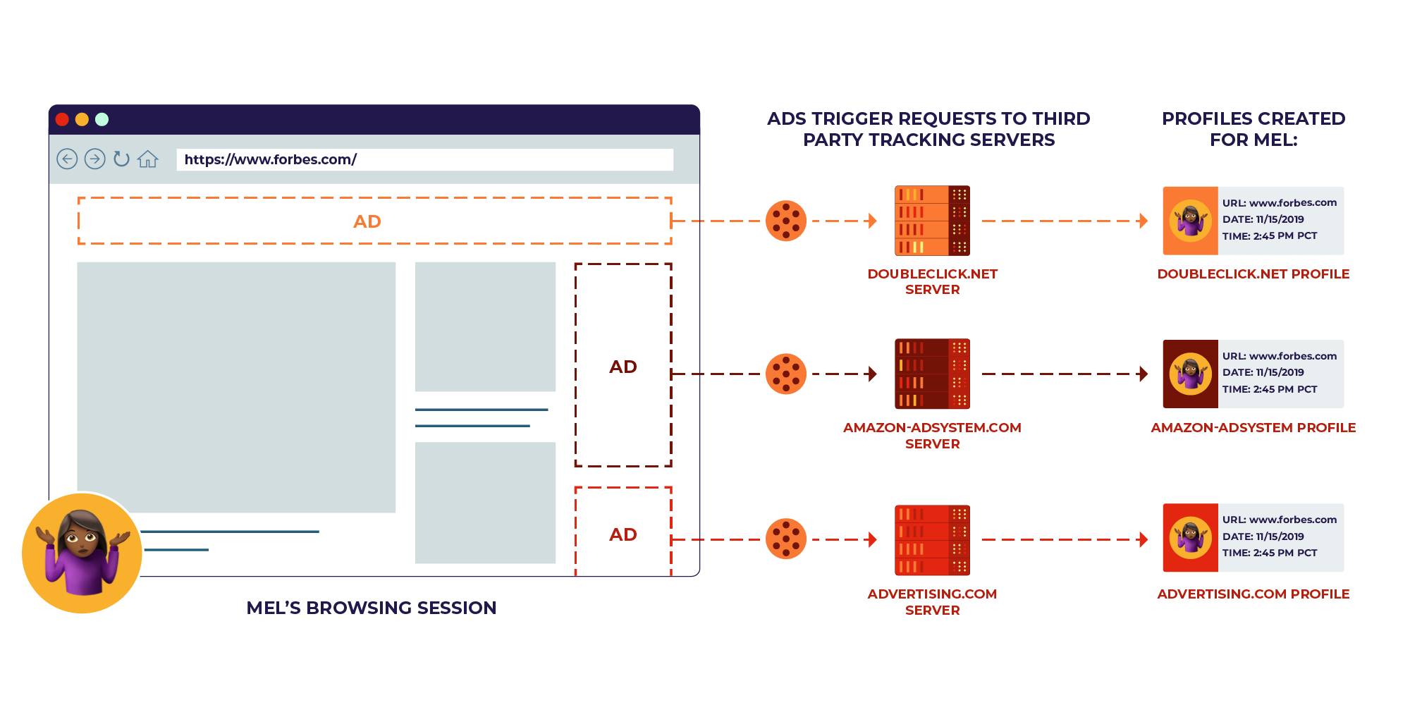 Browsers are the primary way most people interact with the Web. Each time you visit a website, code on that site may cause your browser to make dozens or even hundreds of requests to hidden third parties. Each request contains several pieces of information that can be used to track you.